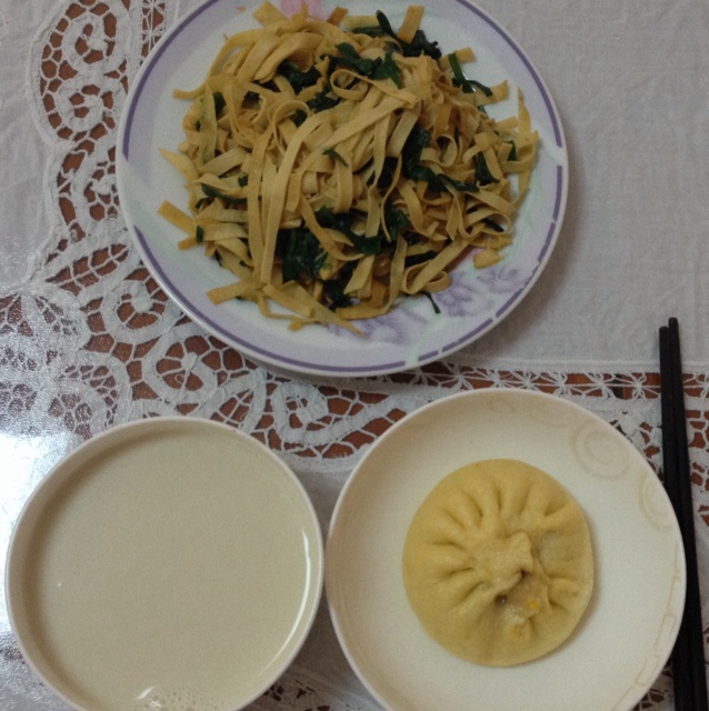小假期的最后一顿早餐 花生豆浆 粗粮芹菜包 韭菜炒豆腐丝
