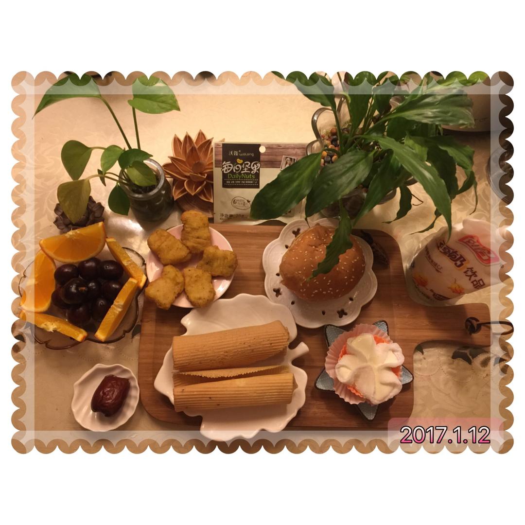 /ka清风百合 做过 早餐•2017年1月12日 💗早餐:香辣鸡腿堡🍔、上校鸡块、雪媚娘、蛋卷、祖名豆奶、每日坚果🌰、枣核恋、赣南脐橙🍊、车厘子🍒。 #早餐•2017年1月12日# 2017-01-12
