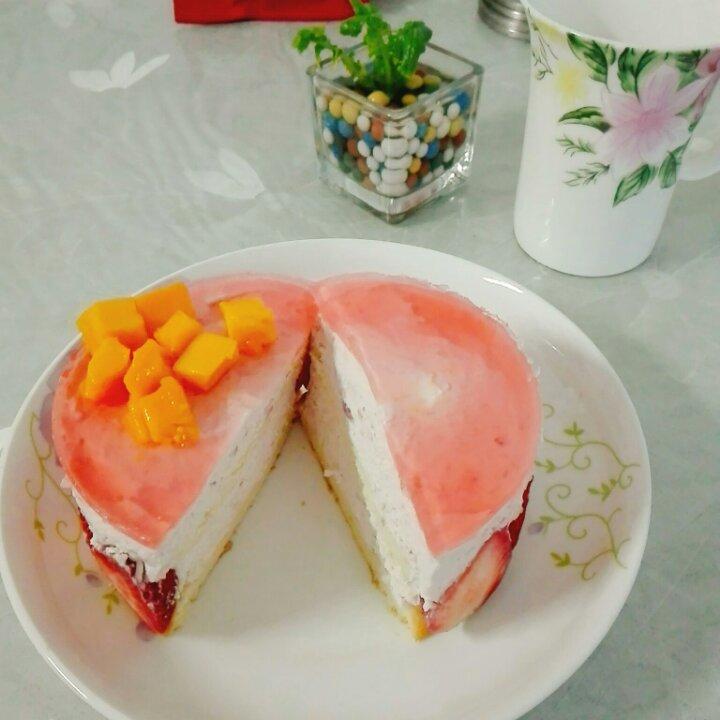 蛋糕底膜薄了,慕斯液放置时间长了,造成口感不是很细腻,继续努力😊加油👄