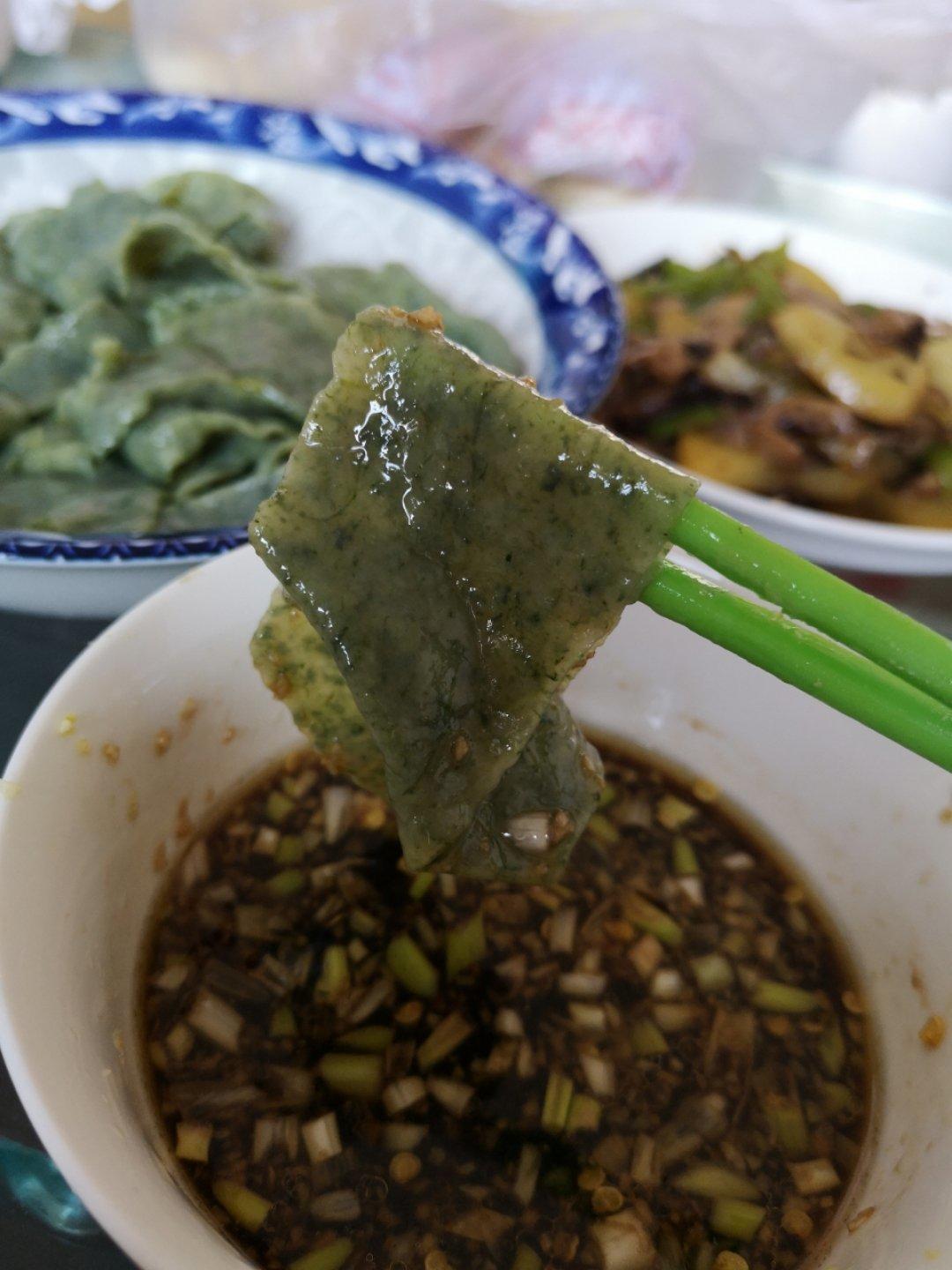 菠菜面条,沾蒜汁,倍儿香!