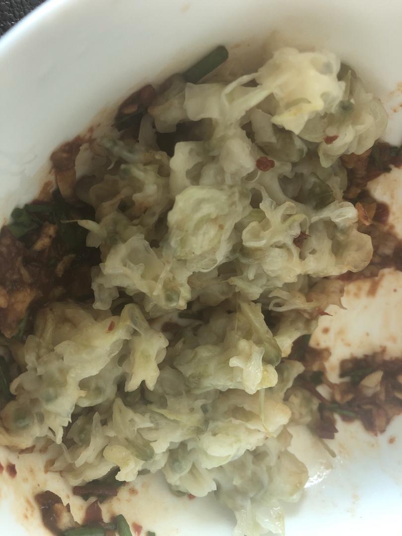 4. 加调料:蒜蓉,小辣椒/辣椒酱,葱花,蚝油,麻油,花椒油