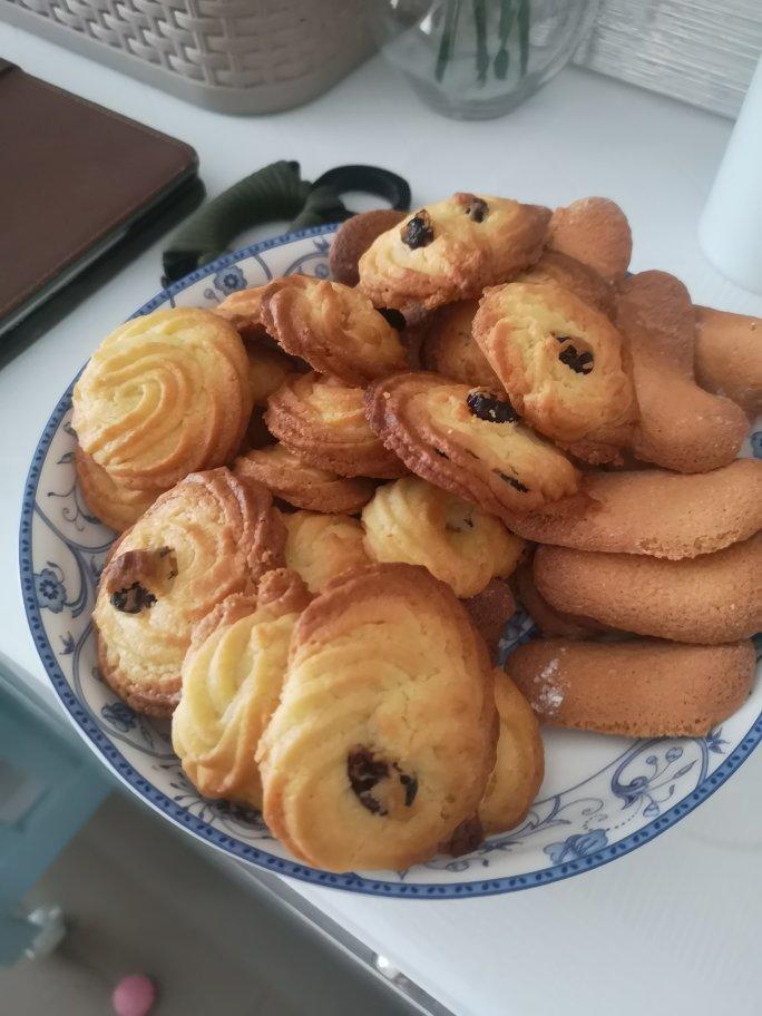做了曲奇饼干和手指饼干,加了一点蔓越莓上去,裱花技术太渣,味道还阔以!