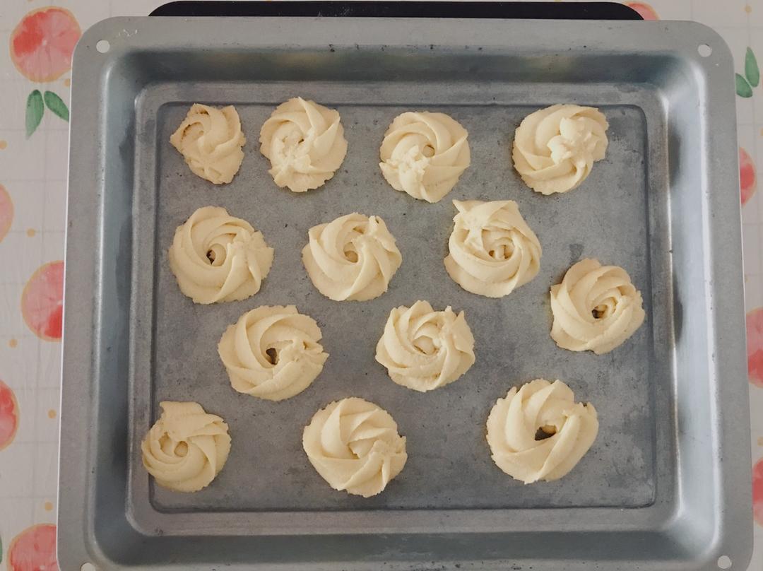 第一次做黄油曲奇,方子不错。但是我的曲奇不怎么酥,奇怪