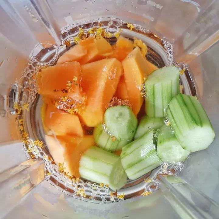 小政知行空間 做过 『小政暗黑实验室』柚子/任何水果奶昔 突然很好奇,木瓜和黄瓜搭配会是什么味道呢?再撒上一把美丽的桂花。画面如此清新,忍不住再看一眼。因为2分20秒后,小清新就将化为噩梦。矮马太难喝了……#午餐•2020年4月25日# 2020-04-25