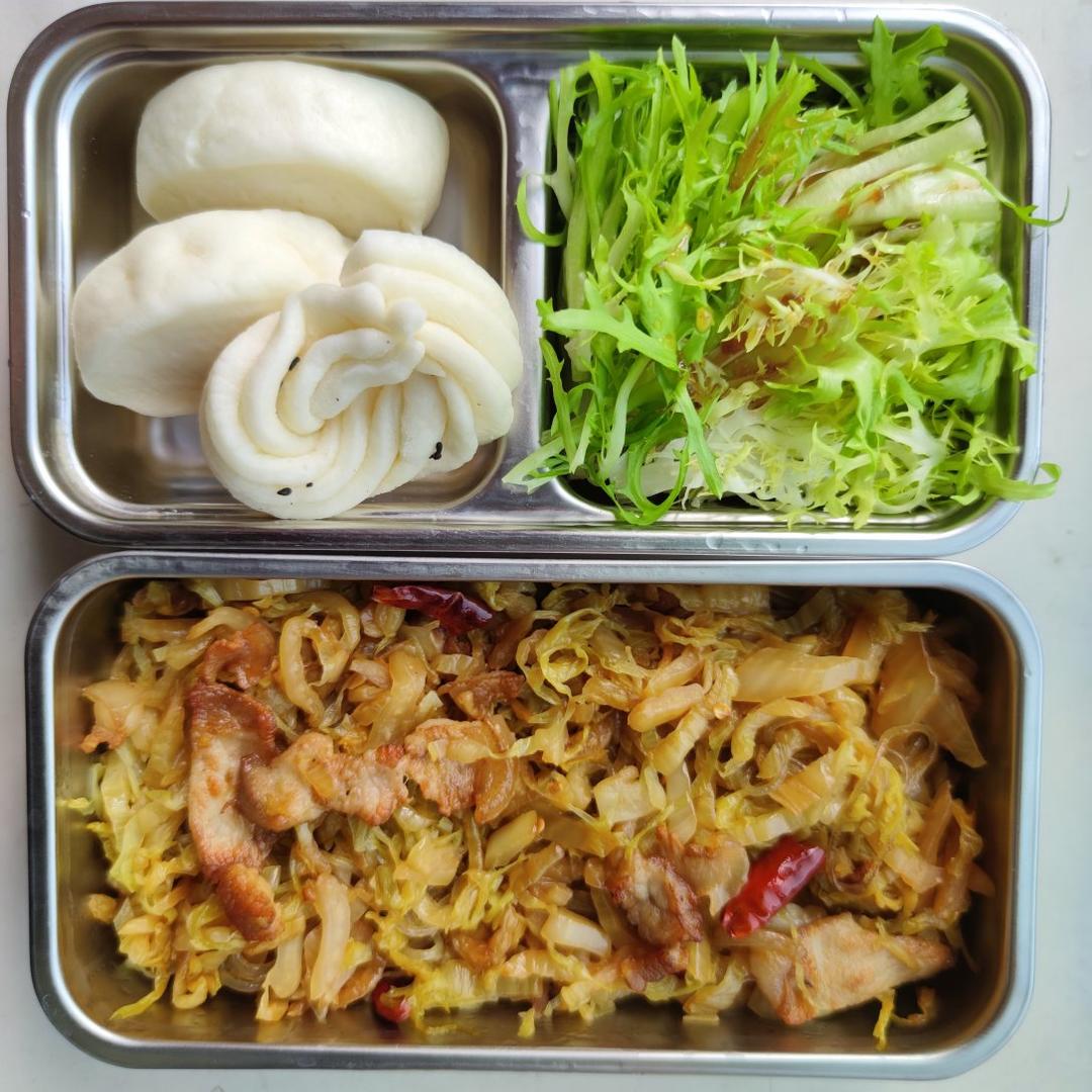 酸菜五花肉+凉拌苦苣+手工馒头花卷