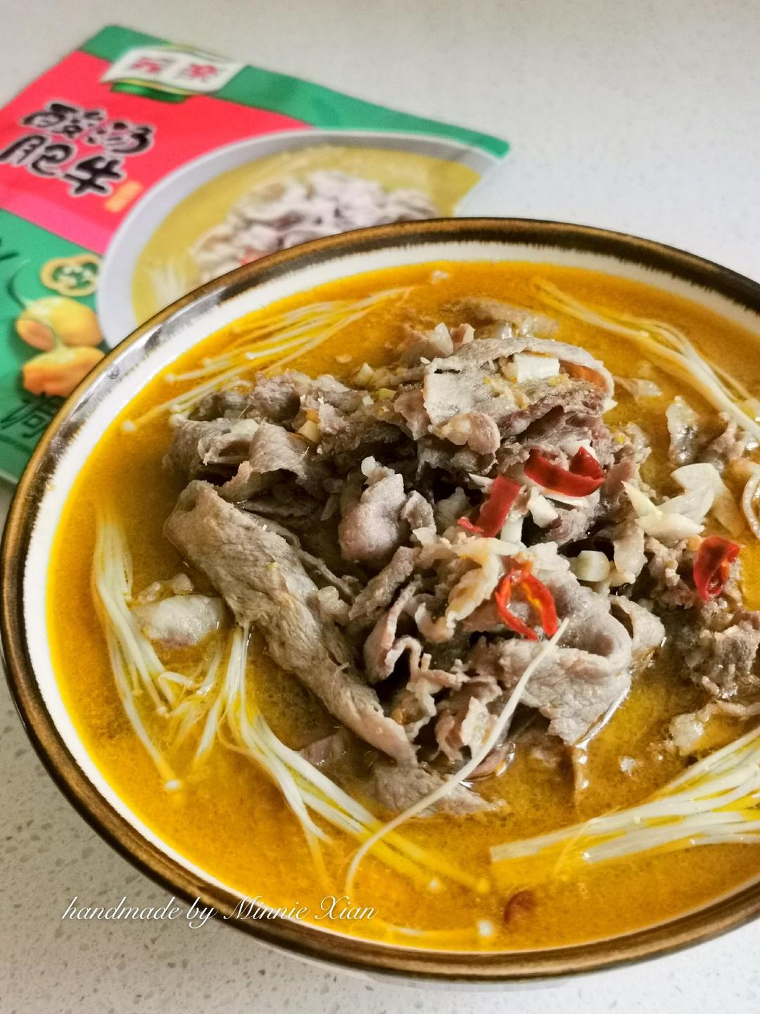 家乐汤包只需简单4步就能做出一碗味道正宗的酸汤肥牛,非常方便👍。