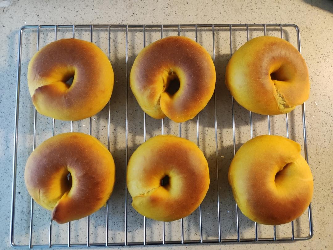 ElaineMicroLife 做过 南瓜贝果 方子很灵。用的用的普通南瓜蒸熟,含水量偏大。加了40g水,面团有点粘,薄膜都打出来了。最后口感比较软。糖10g黄油7g200度15分钟 2022-11-29
