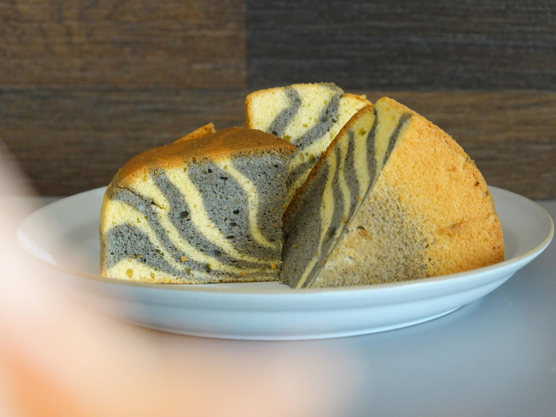 小莹family 做过 11月早餐马拉松 #早餐•2023年11月5日# 黑芝麻戚风蛋糕🍰➕牛奶🥛手忙脚乱交替放面糊后忘记多震几下再进烤箱了,条纹好看,就是气孔有点多#小莹家的柴米油盐酱醋茶🏠# 2023-11-05