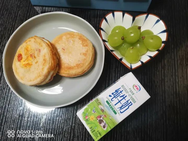 祖国妈妈的生日来了,五星红旗🇨🇳🇨🇳,迎风飘扬,今日早餐打卡:鸡蛋汉堡,晴王葡萄,牛奶