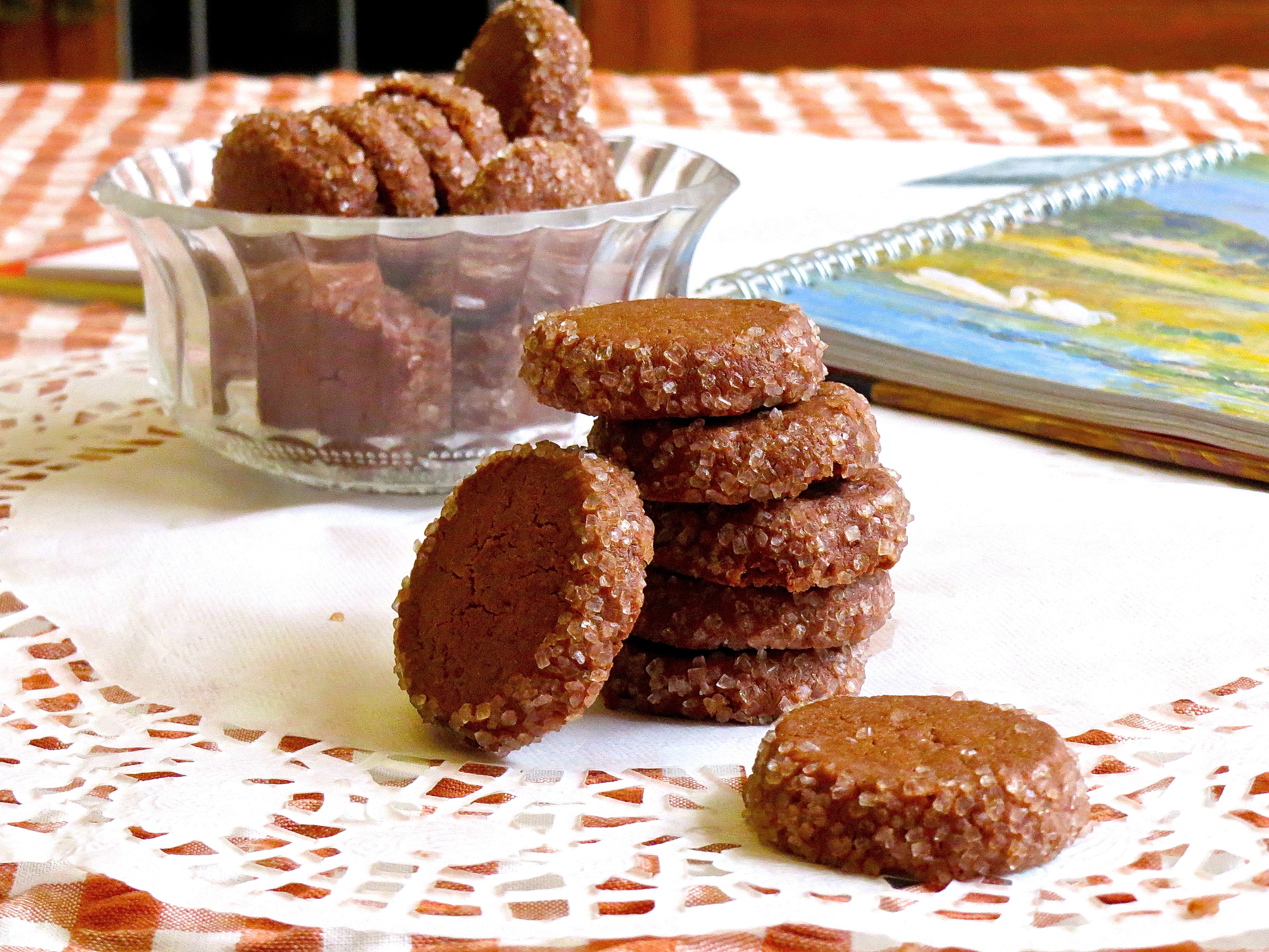 酥饼外圈包裹颗粒分明的粗砂糖好漂亮,伴着浓郁的可可香气,甜中带苦,口感不错哦。下次还要再多裹点钻石让她更blingbling