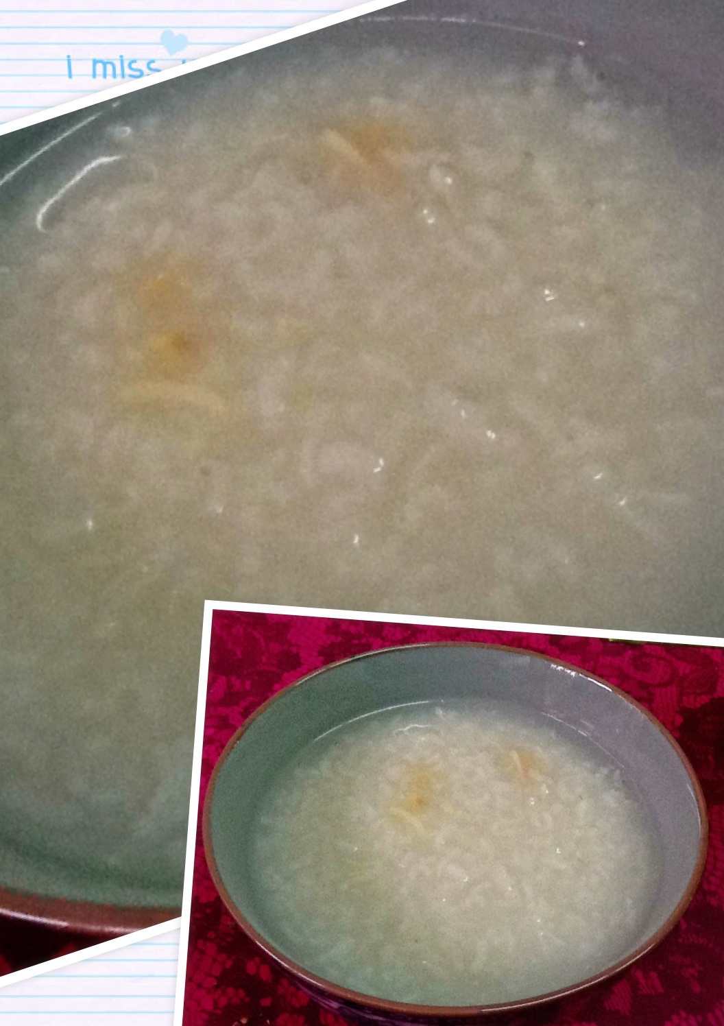 以前总是在瑶柱粥里加一些香菇,其实,这样白白的,更好,白富美!