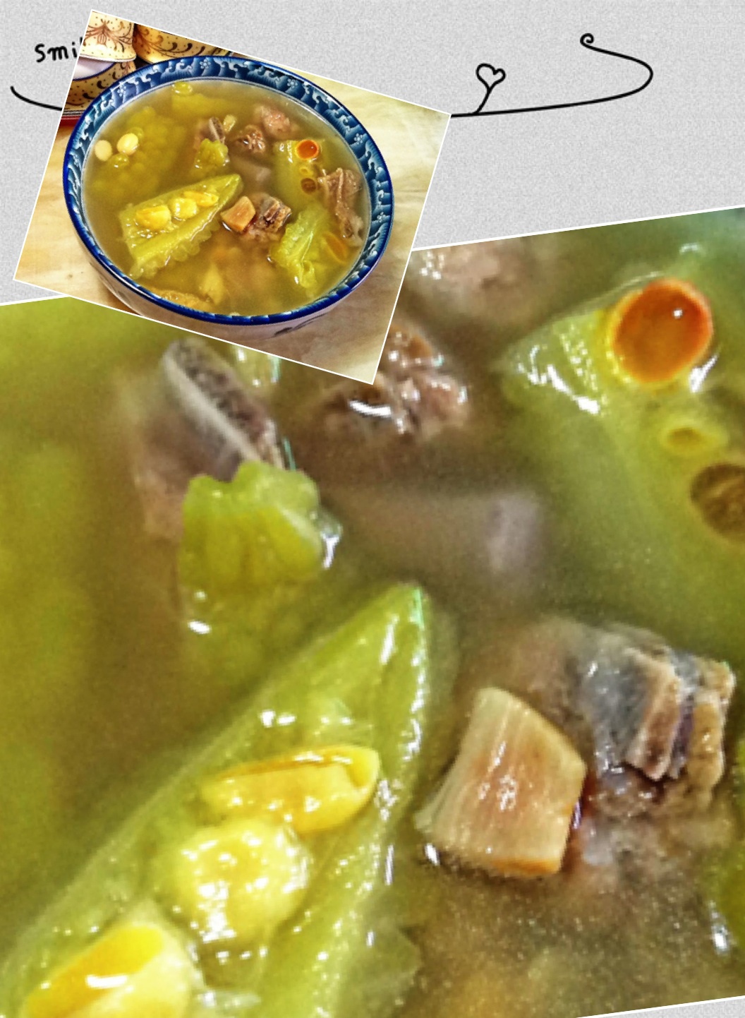 这两天上火,弄了个凉瓜汤,至少煲了三小时以上,美味!我以为煲汤还是不要用高压锅,要充分体会时间...