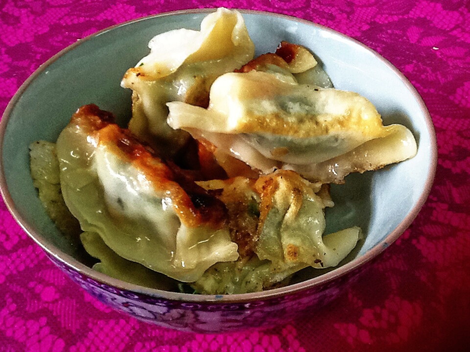 煎过了,饺子底有点煎糊了,不过口感不错。