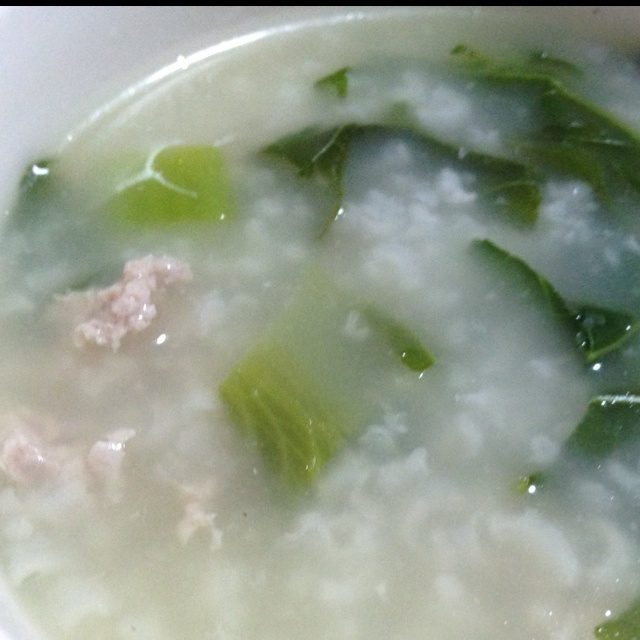 做个清淡的芥菜瘦肉粥给老婆做早餐……