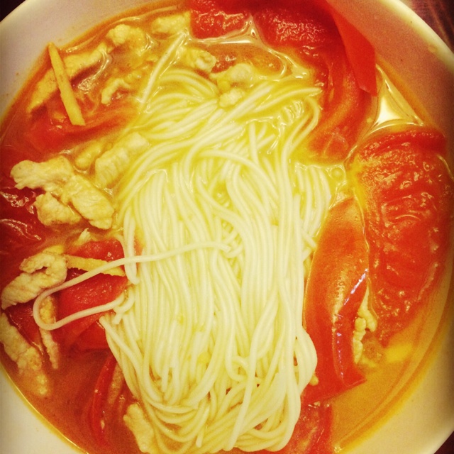 22点的晚饭,西红柿肉丝面:(