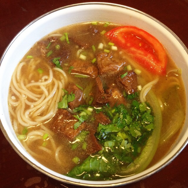 老爸轻松干掉一大碗,家里香料没那么多,但牛肉汤熬得很出味。面条是味千的干拉面条。