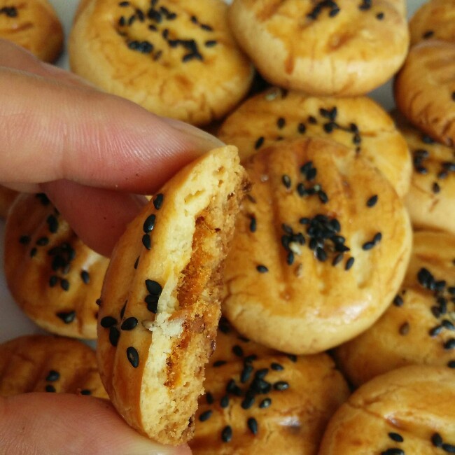 表面刷了蛋液,撒了黑芝麻,喜欢肉松的味道
