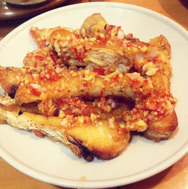 煎魚腩,淋上特製泰式醬汁,不油膩又香口