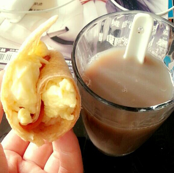 虽然起晚了,但早饭不能不吃,所以是半个卷饼+一杯豆浆