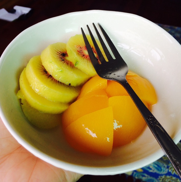 休息天,吃着水果,看着电视,惬意
