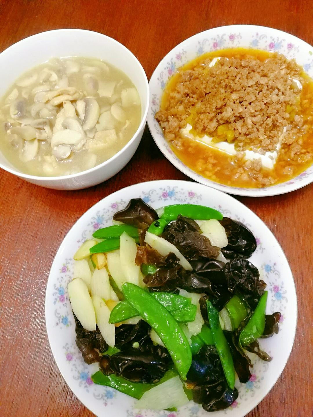 今天晚饭有点素