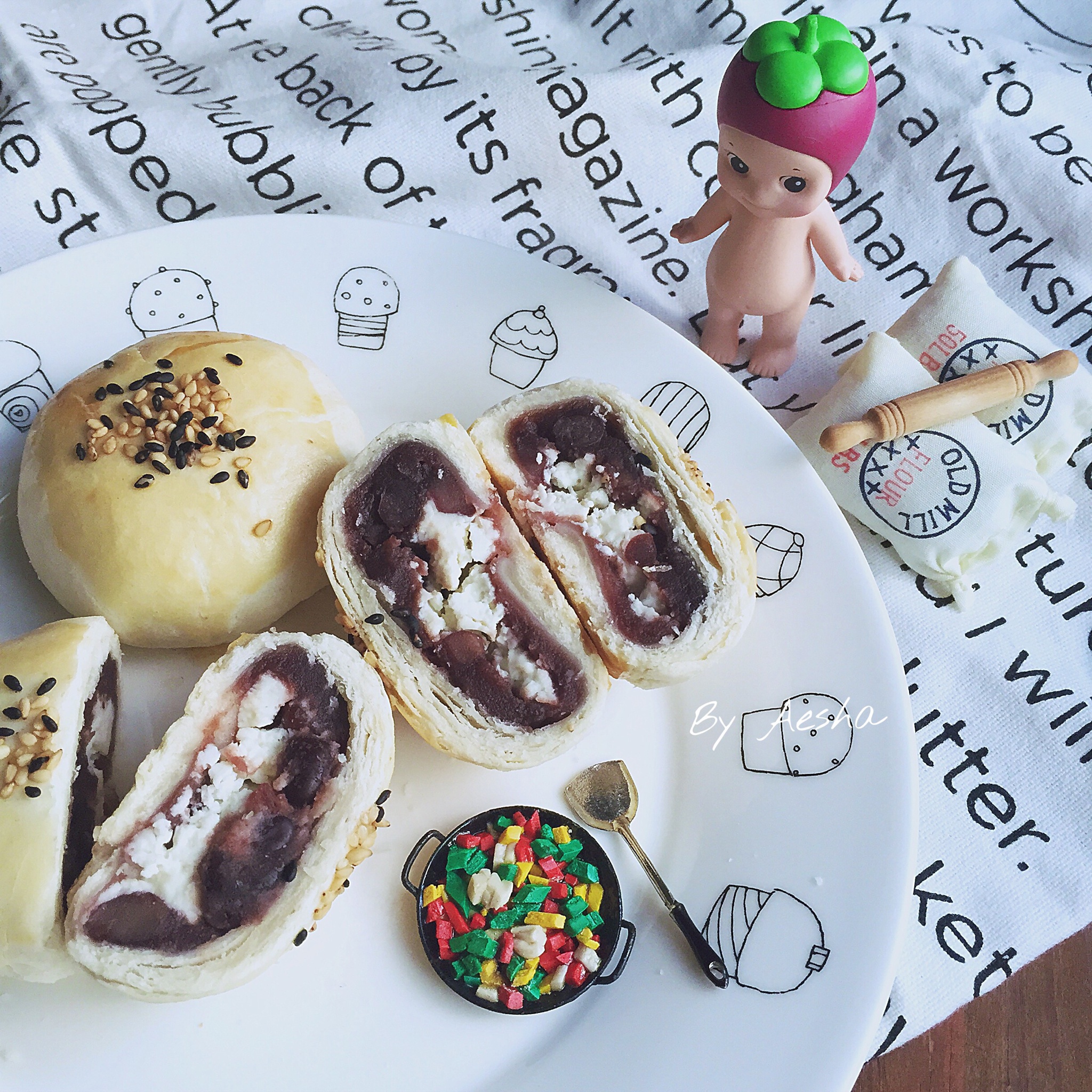 因为我的豆沙比较稀,奶酪也只有涂抹奶酪,所以包馅包的要死要活的,切面很惨的,我给你们看看