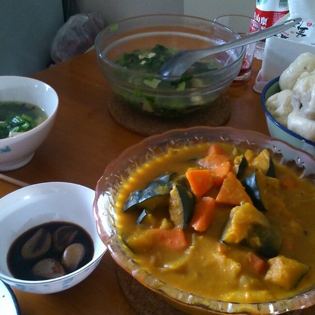小白菜豆腐汤和咖喱炖菜