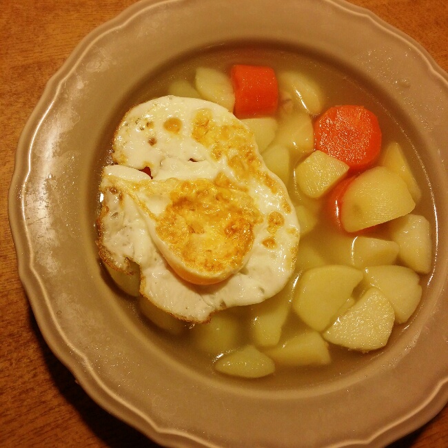 Day 9 晚餐: 不小心炖了一大锅感觉可以吃一周了。烤红薯x1,排骨汤超大份,因为忍不住吃了很多土豆胡萝卜还啃了排骨,...