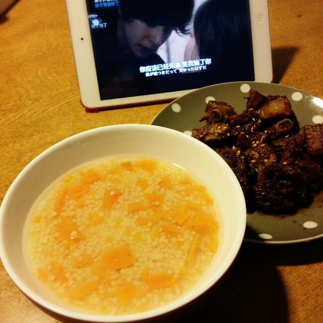Day 14 午餐: 地瓜小米粥,糖醋排骨,血橙一只,黄油曲奇两块。曲奇太好吃了,不吃完我大概停不下来了(……。 (¯﹃...