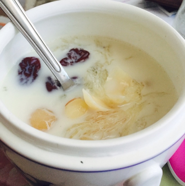 其实这是早午餐啦 牛奶炖燕窝 放了百合莲子和红枣 美容养颜又美味