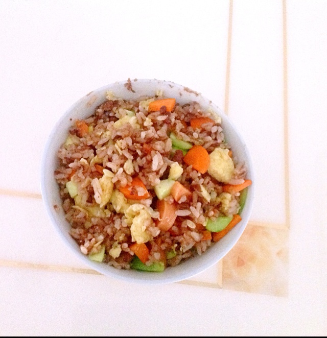 饭是红豆饭所以这个颜色,胡萝卜没有戳有点生,不过总体味道还是棒棒哒