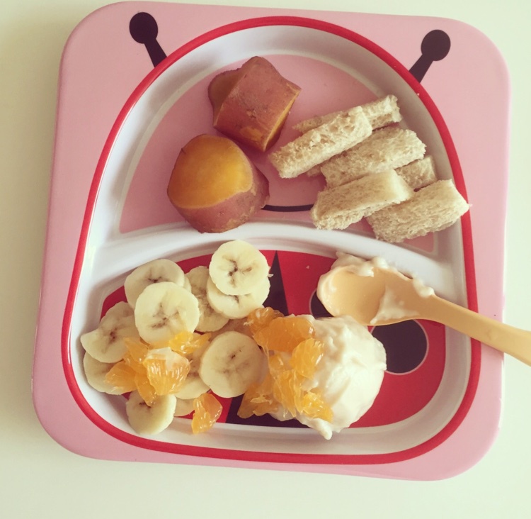 全麦面包+红薯+酸奶+香蕉橘子