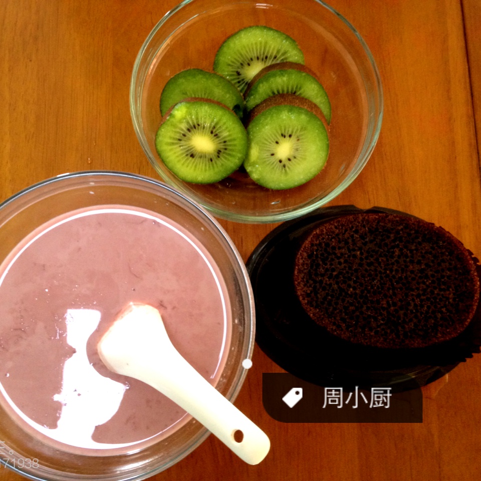 黑米牛奶红枣加蜂窝蛋糕外加猕猴桃一个~今天继续疯玩~
