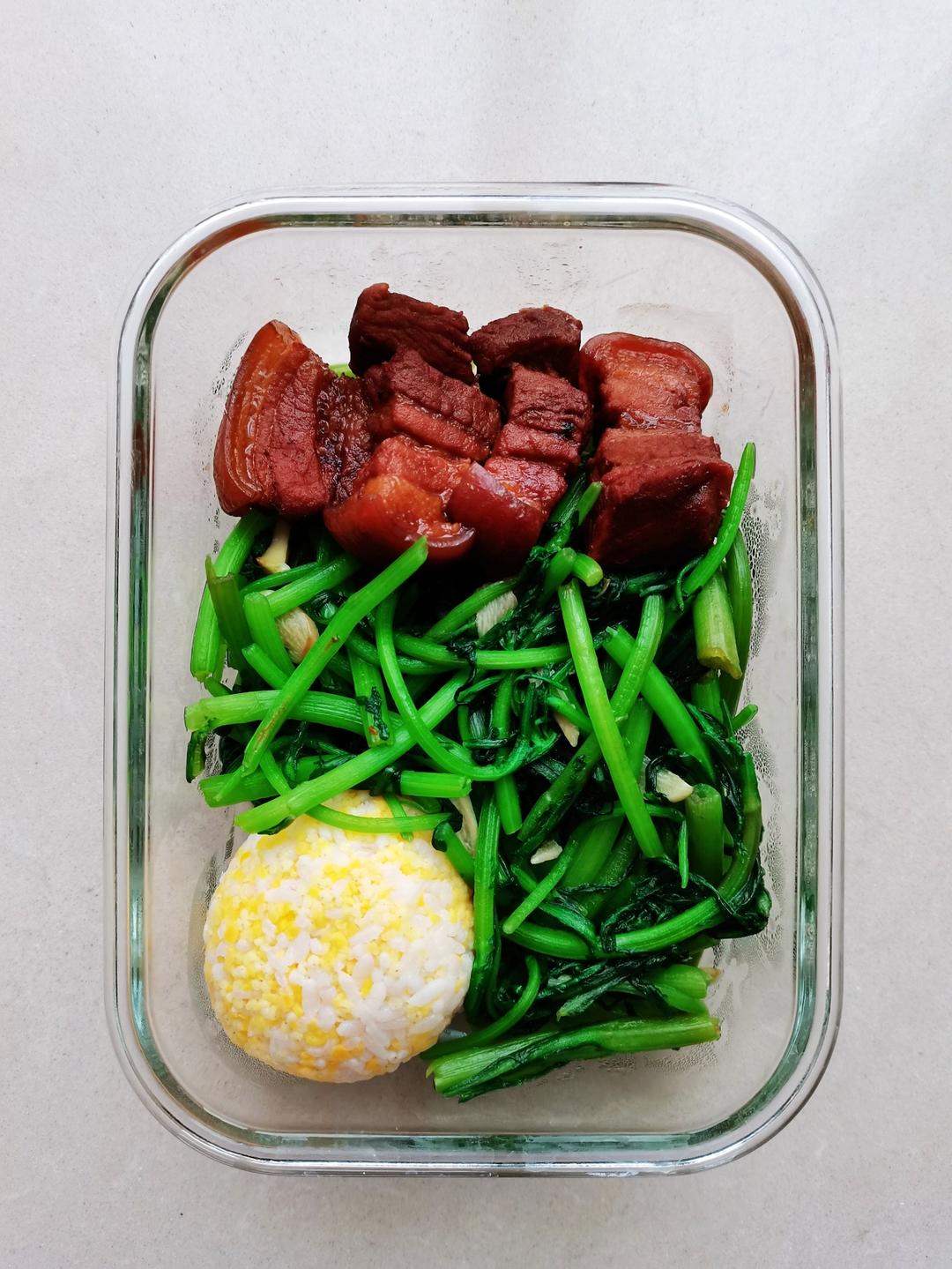 今日便当,红烧肉,清炒茼蒿,三米饭🍱
