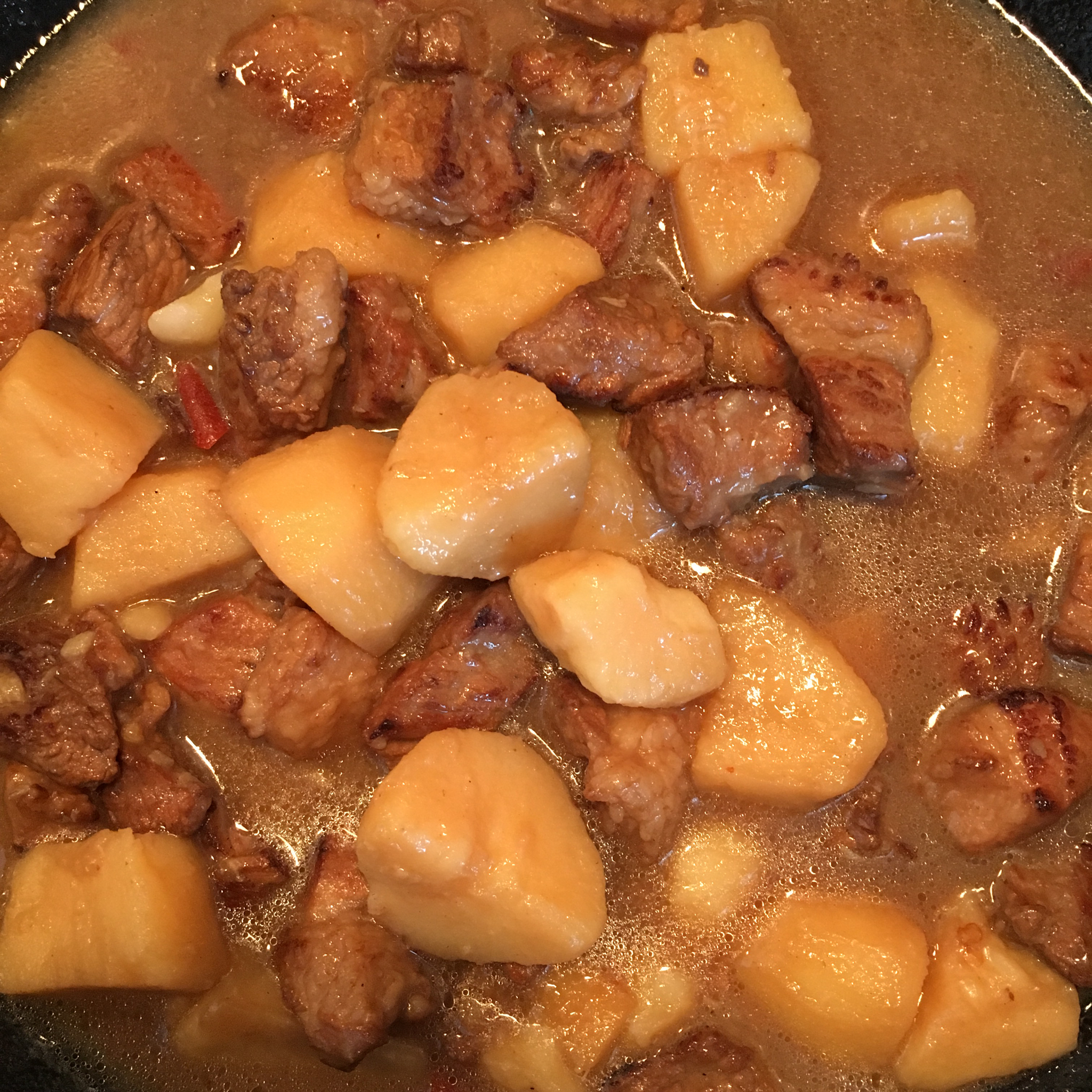 铁棍淮山筒子骨煲出来的汤白白的,淮山比较粉,煲了一个多小时部分淮山已和汤融为一体了,口感很好