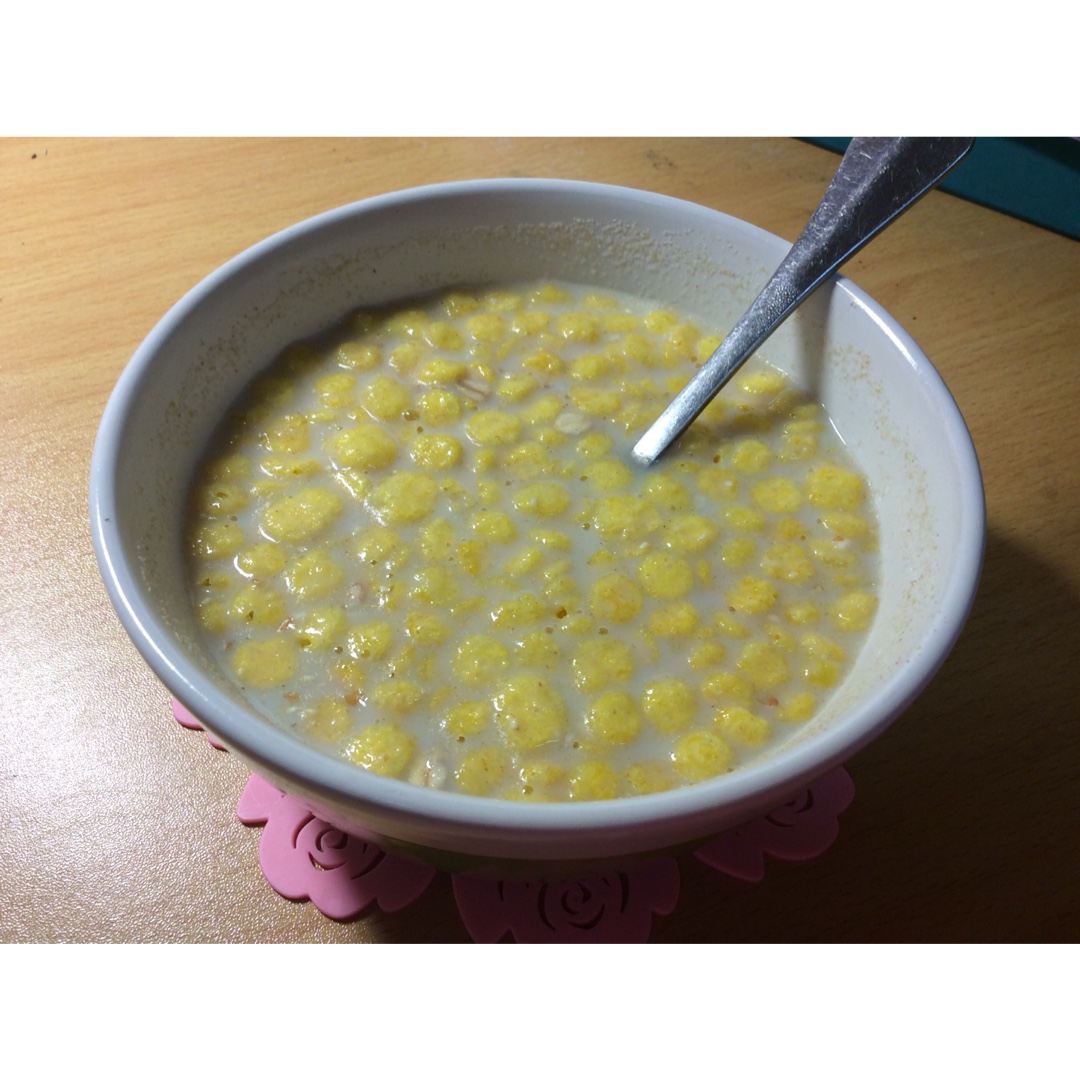 网购新品 麦麸和玉米片 下面还有燕麦 加了奶粉一起冲。好香!