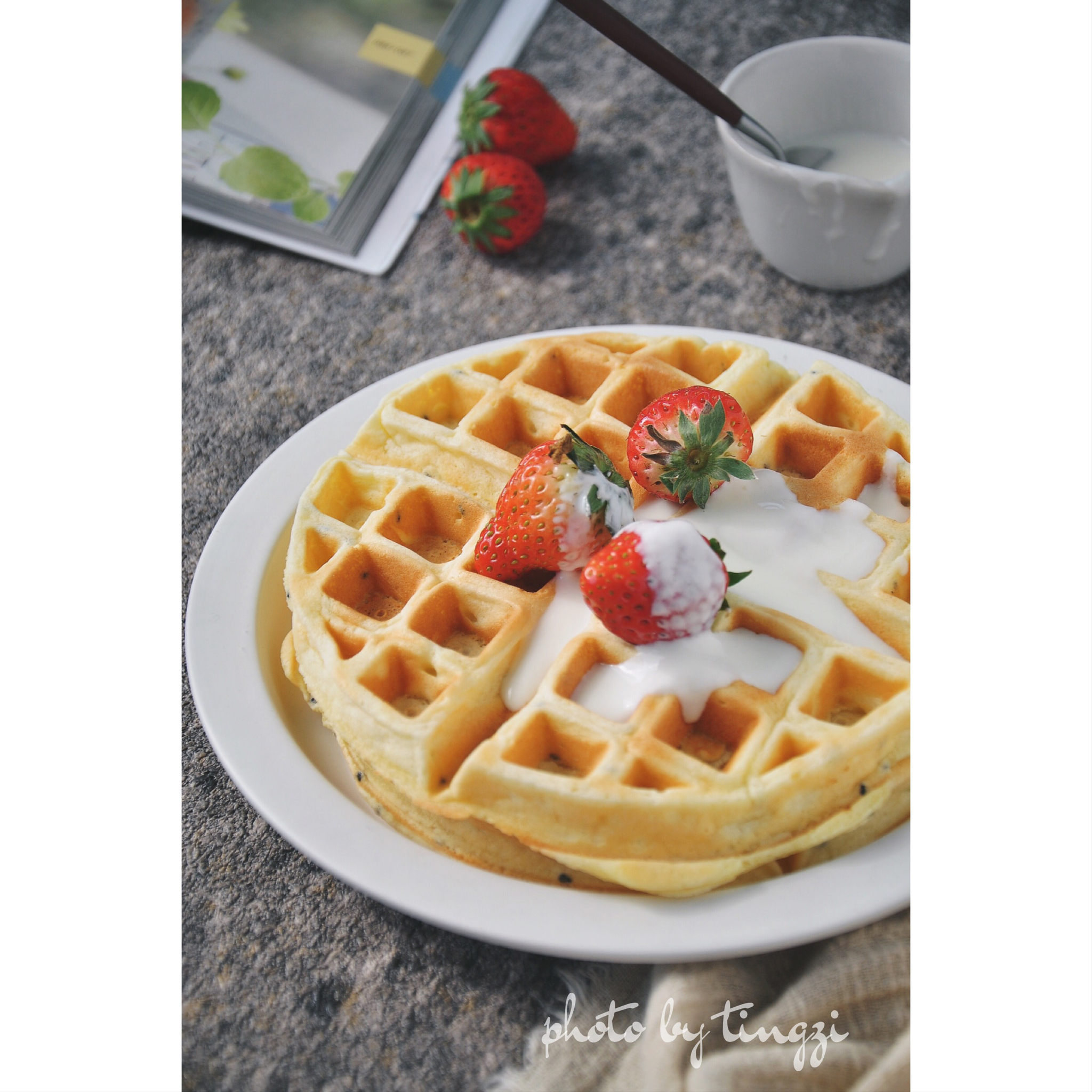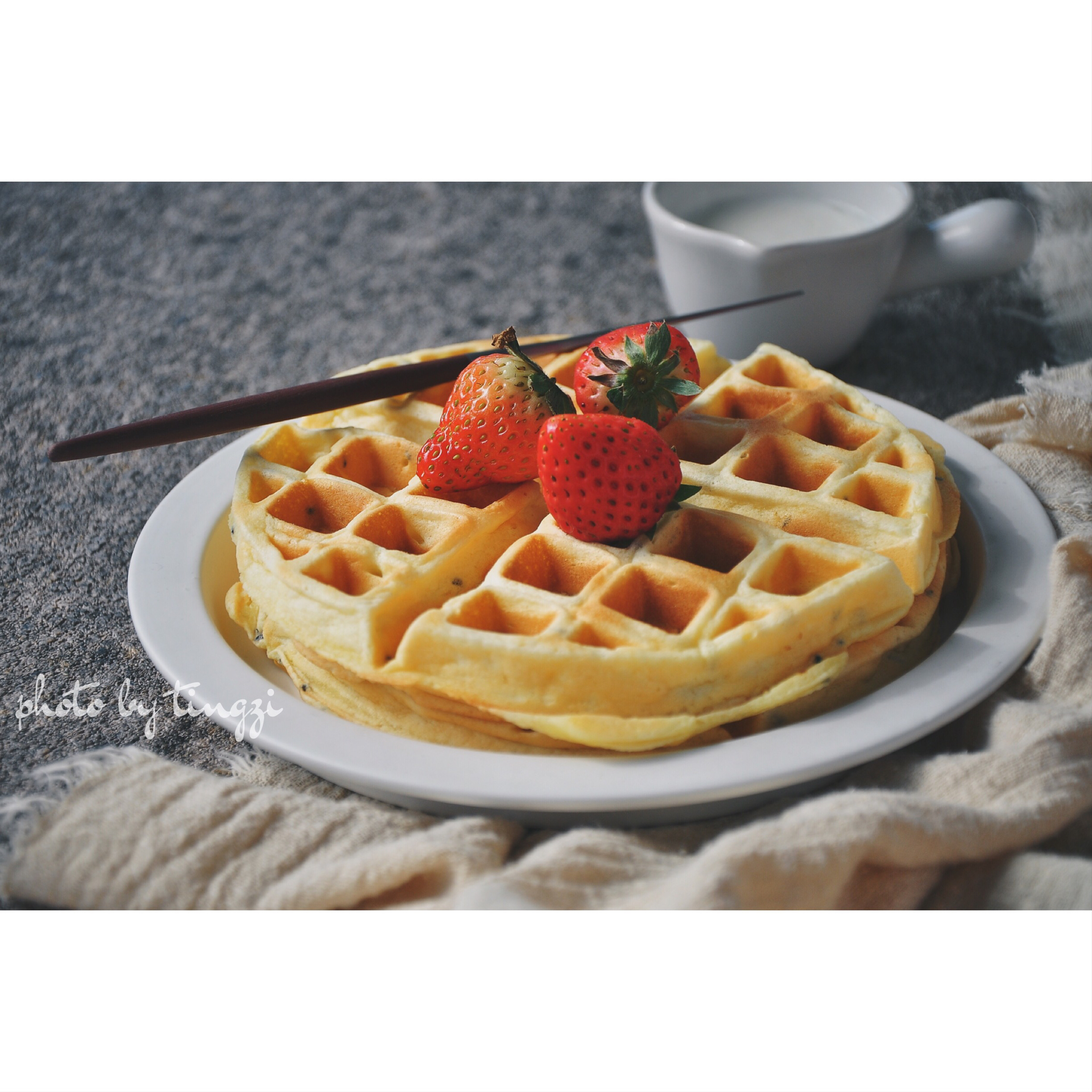 我家小吃货更爱这款戚风版的华夫饼,比基础华夫饼要软要细腻,淋上酸奶或沾点炼乳都非常美味~