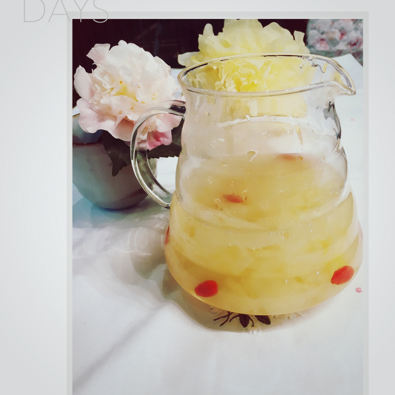 冰糖银耳羹。新鲜银耳在盒子里开得像刚摘下的粉茶花,三十分钟就熬出晶莹剔透的汁水,这个时候加入冰糖和红枸杞再熬十五分钟就完...