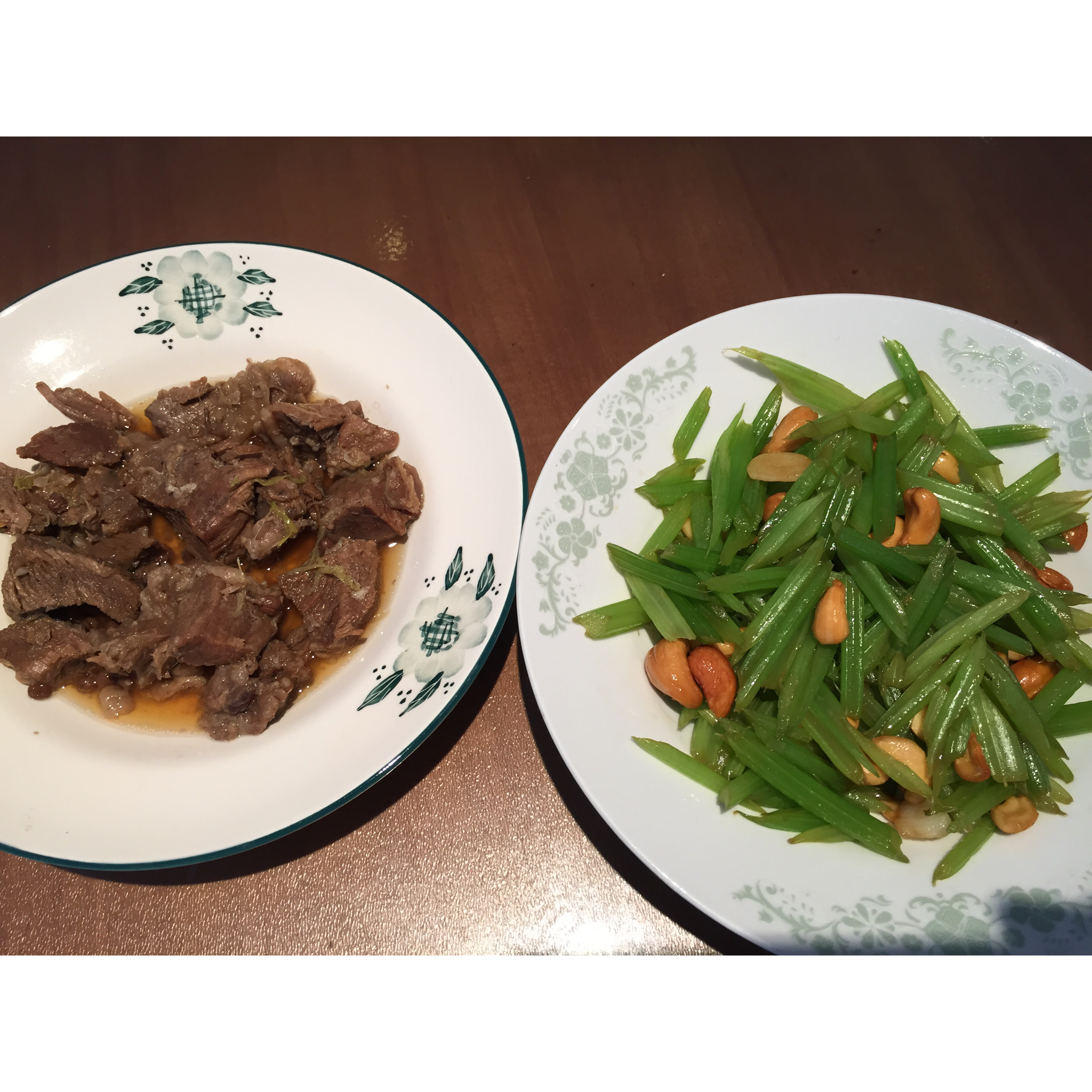牛肉是妞儿爸之前炖好的,现炒了个西芹腰果。