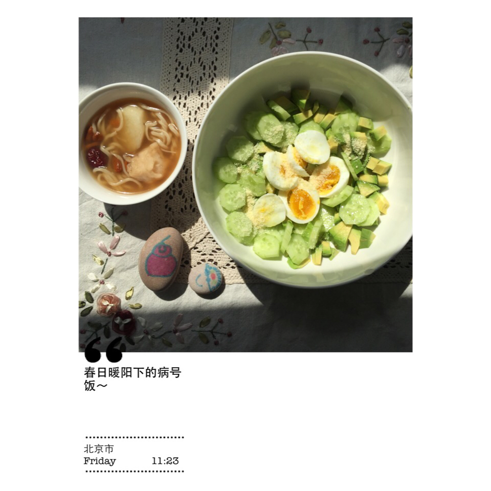 中午,晒着太阳,貌似吃得有点素~