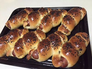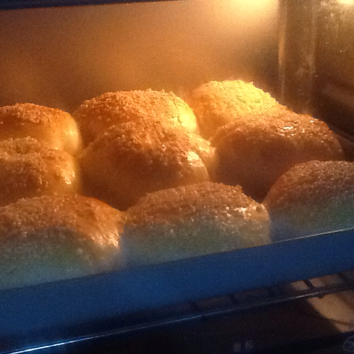第一次烤东西,手揉面累疯了也没有出手膜,发的挺好的,都冒出来了,但是不知道皮为什么硬硬的,是不是烤的时间太长了?味道可以...