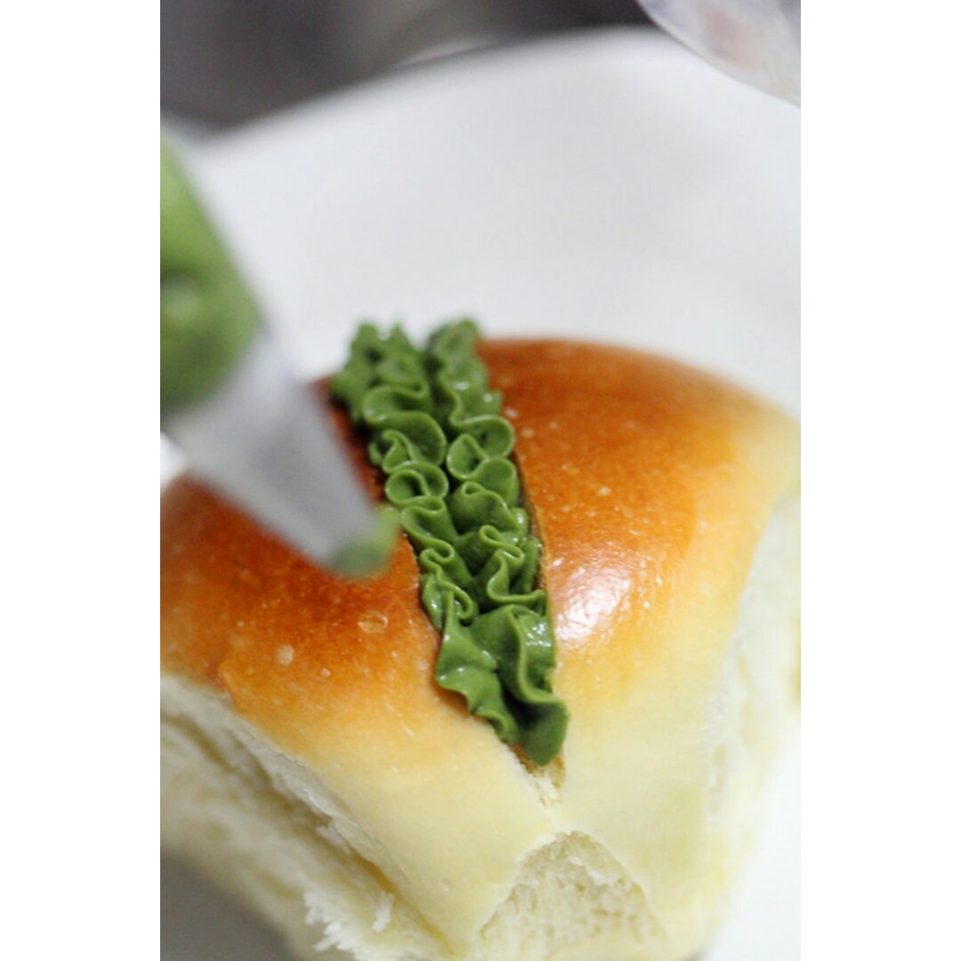 网红奶酪包 用上回熬的抹茶奶油酱代替奶酪酱 撒上奶粉 好吃到爆 春天的气息就这么浓烈烈的撞...