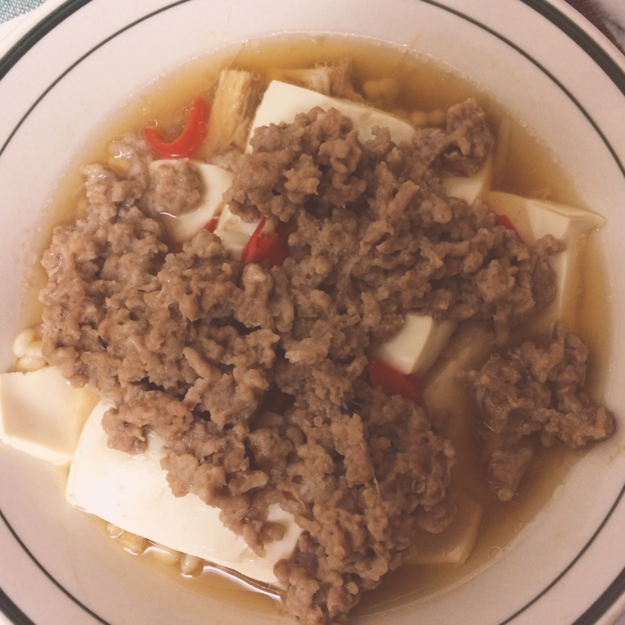 不错的搭配,鲜味肉味豆腐味齐全,也像是基础的肉末豆腐的一个加强版吧……肉真的要好才有味道