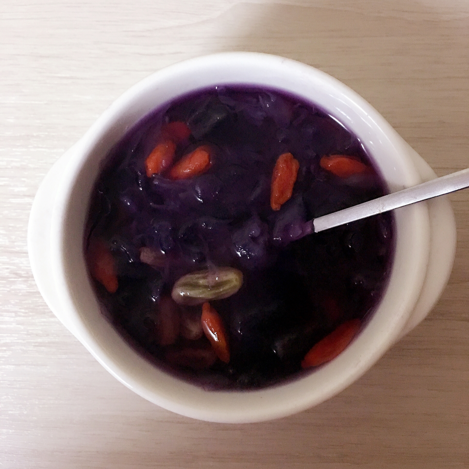 紫薯银耳羹加了枸杞和葡萄干真的好好喝!