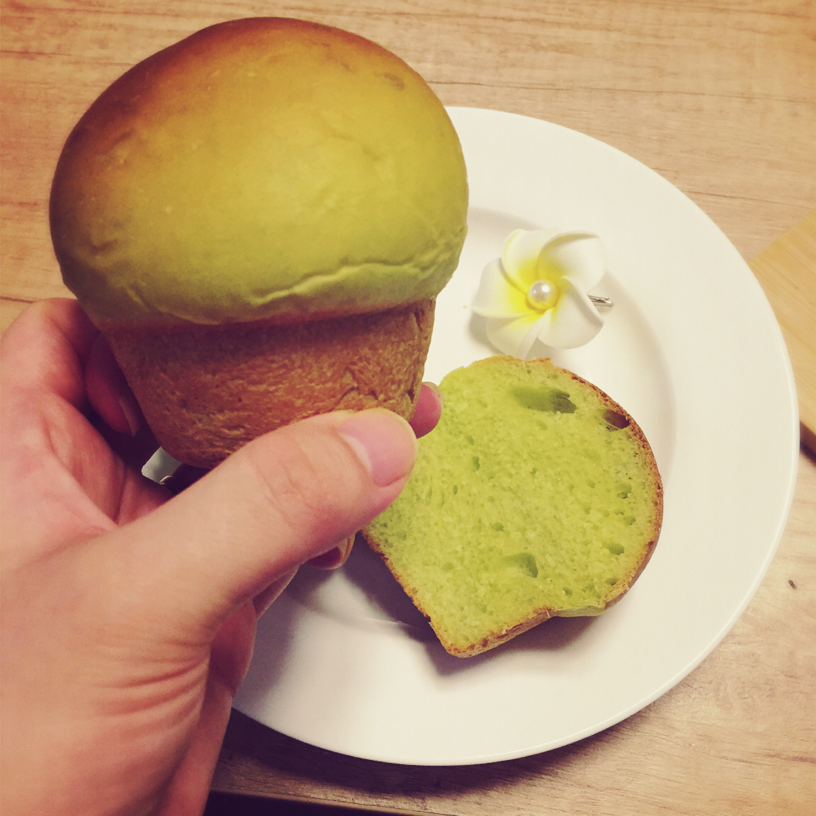 马芬模做的 把牛奶换成了等量的菠菜汁 可能是牛奶和菜汁被面粉吸收的量不同 用菠菜汁感觉面有点粘 下次减10ml试试 #...