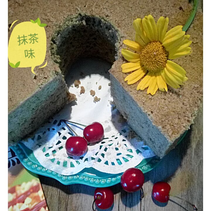 昨天做得,一会儿就灭了!😜女儿下令,再做一个!我就试着加了一点点抹茶,颜色不咋滴,味道不错!😄