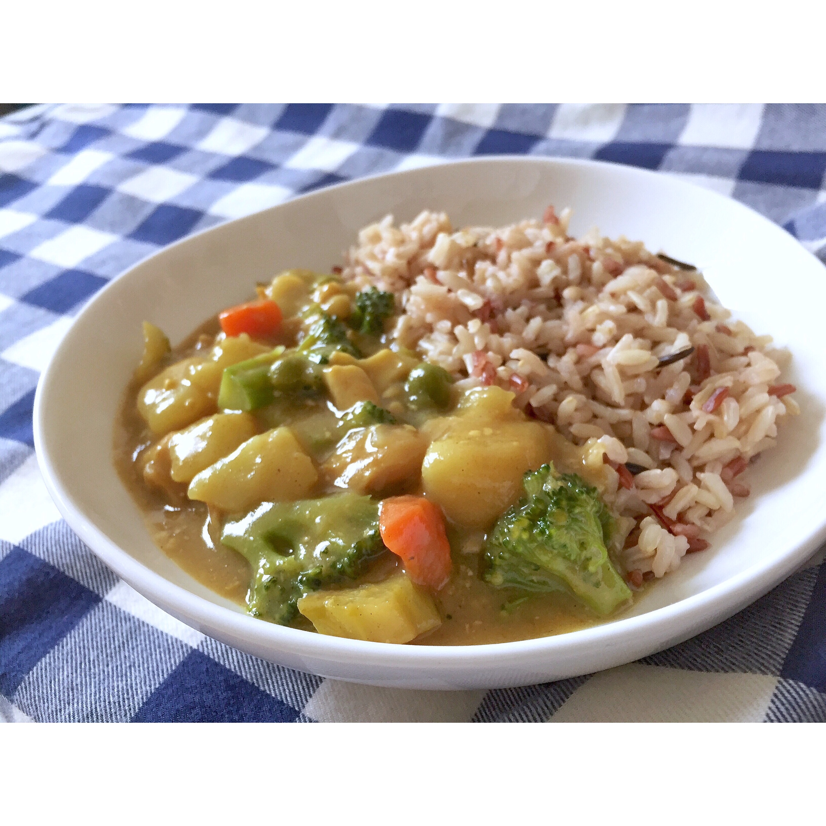 为了消耗冰箱的存货,再加上蛮久没吃咖喱饭了,昨晚上就炖了小半锅咖喱,里头还加了碎豆腐,豌豆,西兰花和在超市意外发现的佛手...