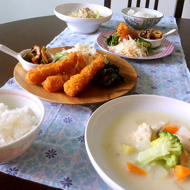 炸虾+鸡肉蔬菜奶油浓汤