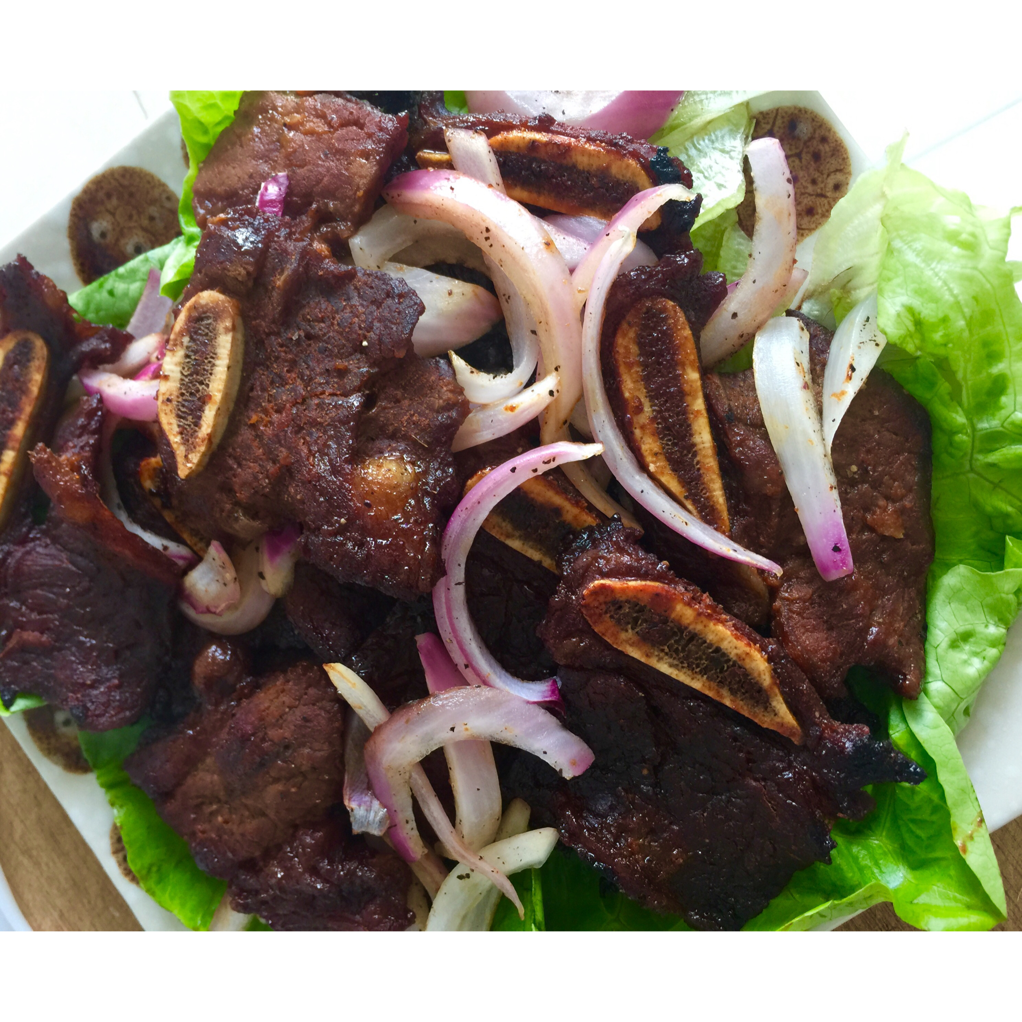 用蜂蜜和韩国辣酱腌了再烤的牛仔骨