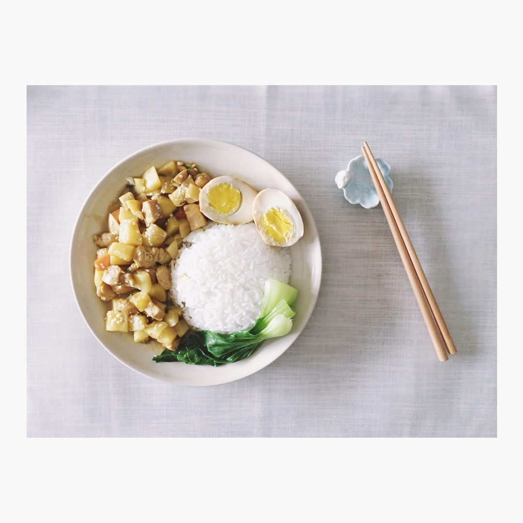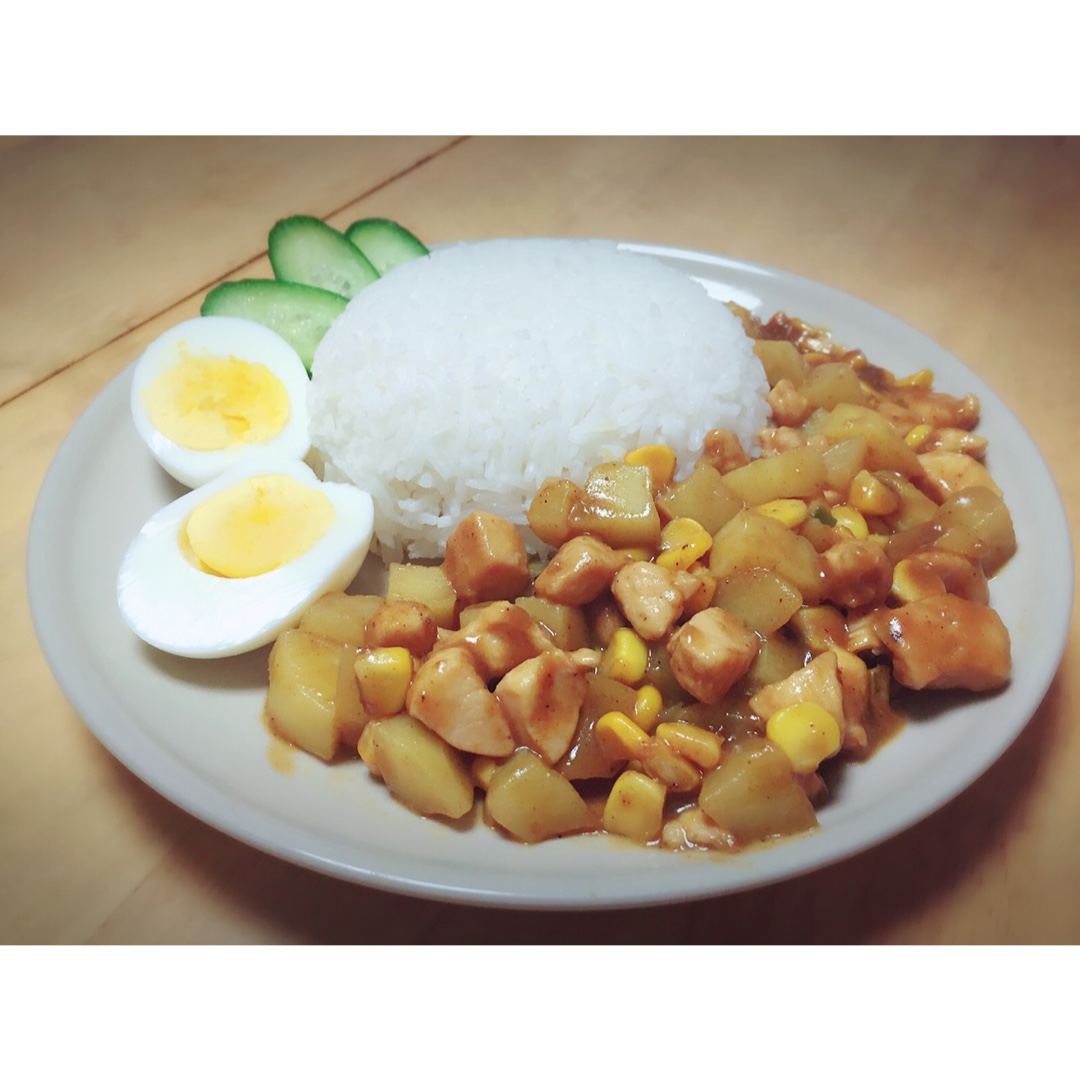 咖喱土豆鸡块,切片黄瓜